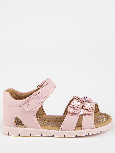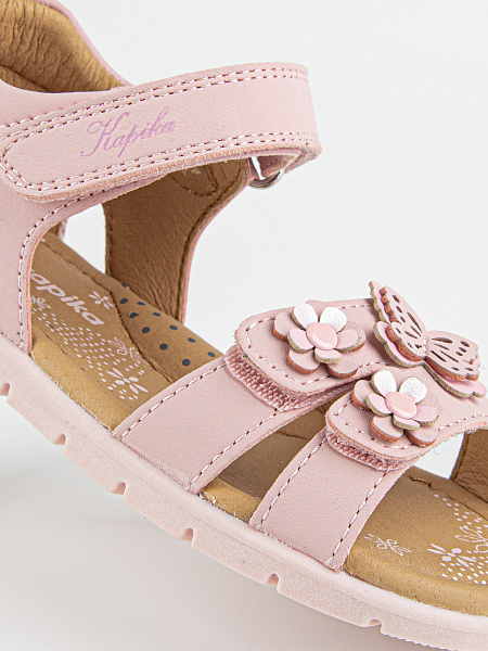 Нежный розовый цвет и цветочный декор придают этим сандалиям особое очарование. Открытый носок дарит ножкам свежесть, а высокая закрытая пятка надёжно фиксирует стопу во время активных игр.