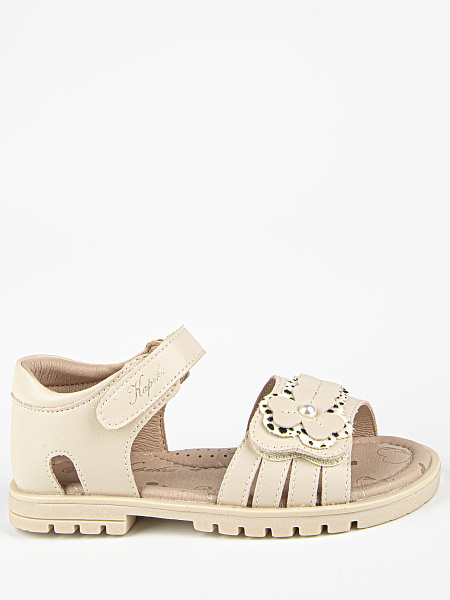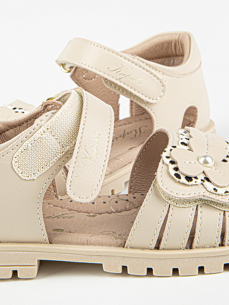 Верх выполнен из комбинации натуральных и качественных искусственных материалов, а внутренняя часть и стелька — из натуральной кожи. Это значит, что даже в самую сильную жару ножки остаются сухими и свежими: кожа «дышит», не создавая парникового эффекта.