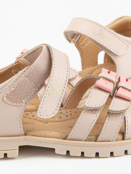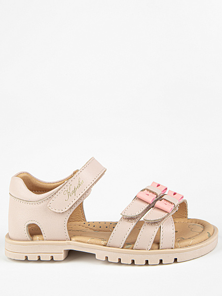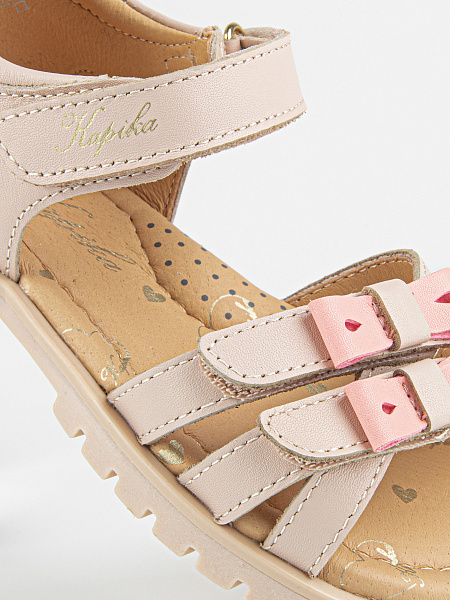 Верх, подкладка и стелька выполнены полностью из натуральной кожи. Это экологичный материал, который позволяет коже «дышать», не вызывает раздражения и не натирает даже в жаркую погоду. Со временем сандалии мягко подстраиваются под анатомию детской стопы.