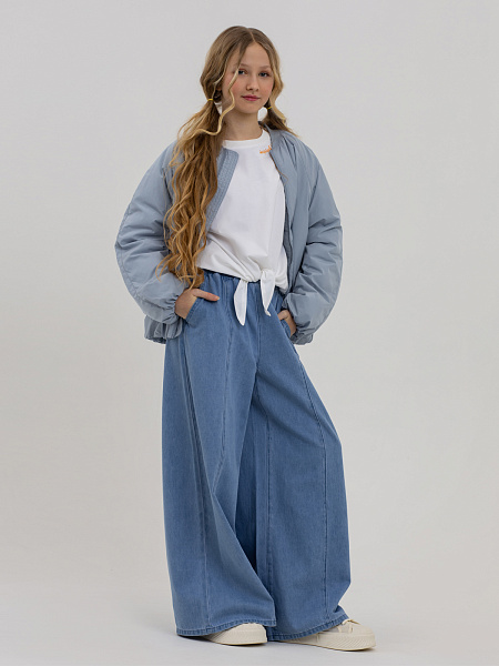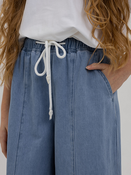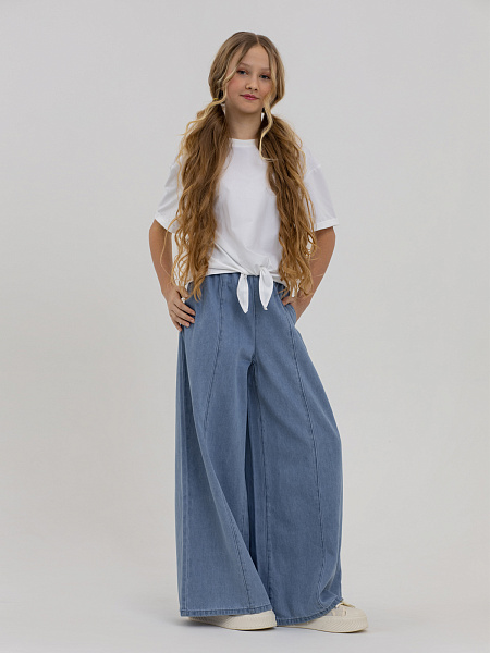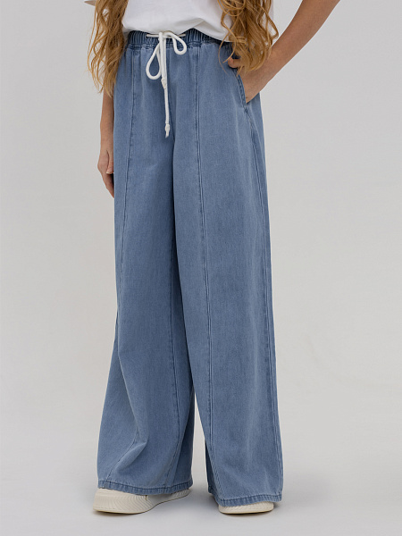 Эти широкие джинсы для юных модниц – настоящий маст-хэв в любом гардеробе. Нежный деним дарит ощущение комфорта и бережно относится к чувствительной коже. Благодаря свободному силуэту, они совершенно не сковывают движений, позволяя девочкам активно проводить время. Средняя высота талии и эластичный пояс с регулируемой шнуровкой обеспечивают идеальную посадку и удобство на протяжении всего дня. Практичные накладные карманы с боковым разрезом станут надежным хранилищем для любимых гаджетов и всяких мелочей.