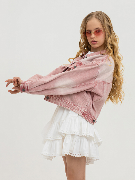 Эта джинсовая куртка для юных модниц – настоящее воплощение винтажного шика. Благодаря свободному прямому силуэту и слегка опущенным плечам, она дарит полную свободу движений. Классический отложной воротник, длинные рукава с удобными манжетами на кнопках и регулируемые хлястики по нижнему краю делают эту модель не только стильной, но и невероятно практичной. А два вместительных накладных кармана идеально подойдут для хранения всяких мелочей.
