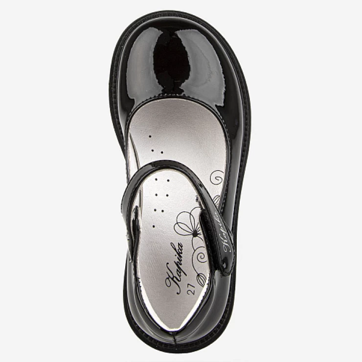 Туфли для девочек черного цвета, лакированые. Это настоящее произведение искусства, созданное для того, чтобы дарить комфорт и стиль. Натуральная кожа внутренней подкладки и антибактериальная стелька позаботятся о вашей гигиене в течение дня. Теперь ваша маленькая модница сможет наслаждаться каждым шагом в этих туфлях!