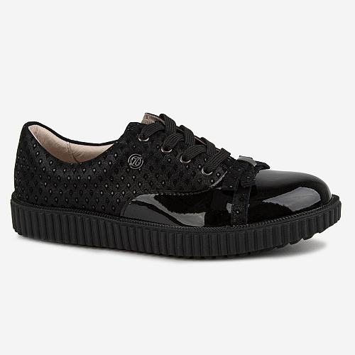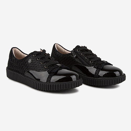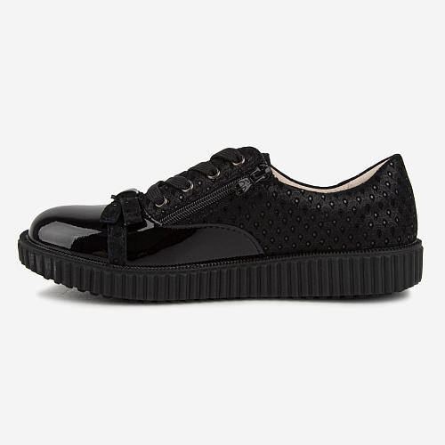Мы предлагаем вам повседневные полуботинки для девочки с комбинированным верхом из натуральной кожи и экокожи. Подкладка и стелька из натуральной кожи, которые обеспечат комфортную носку. Наличие подсводника и жёсткого задника создает дополнительное удобство. Надежная и долговечная ТЭП подошва не скользит и хорошо гнется. Молния сбоку облегчит процесс обувания.