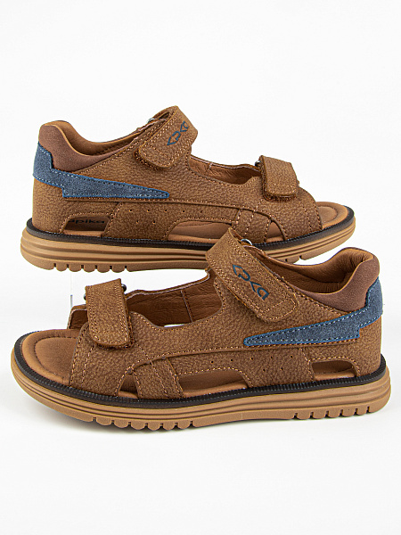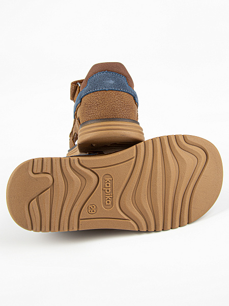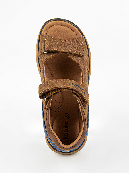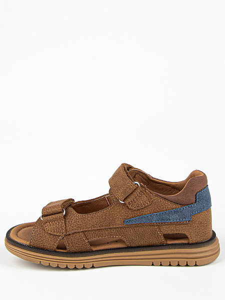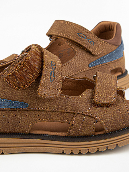 Благородный коричневый цвет в сочетании с цветной полоской делает эти сандалии узнаваемыми и стильными. Универсальный дизайн подходит и мальчикам, и девочкам — отличный выбор для сада, прогулок и ежедневной носки.