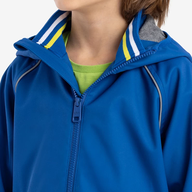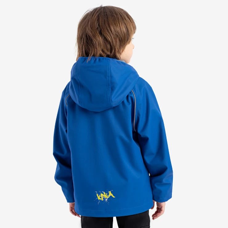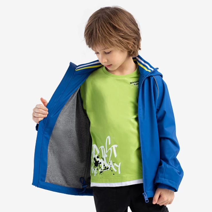 Межсезонная грубая куртка для парня сделана в ярком синем цвете и обладает рукавом-регланом для свободы движений. Светящиеся элементы на рукавах гарантируют безопасность в темное время дня. Неотделимый капюшон оснащен подкладкой из жесткого трикотажа, внутренняя воротник и манжеты из растяжимого материала с кромками дополнительно оберегают от ветра и влажности. Модный дизайнерский рисунок со светящимися элементами на задней доли куртки придает образцам оригинальность. Куртка Капище из грубого материала — хороший выбор для малыша, потому что она: сначала, грубая и свободная, что гарантирует свободу движений. Затем, она располагает разными универсальными и ветронепродуваемыми принципами. Далее, она универсальна и годится для разных погодных обстоятельств. Наконец, грубые куртки-куртки легко ухаживают и быстро высыхают. Кроме того, это модные модели и образцы разных цветов и принтов. И в конце концов, софтшел — экологически безопасный материал.