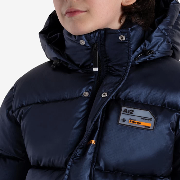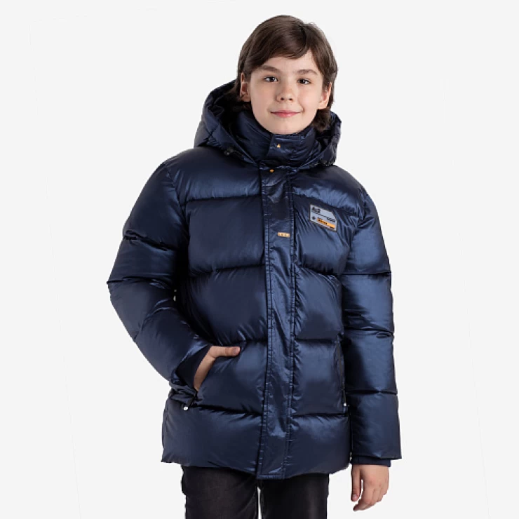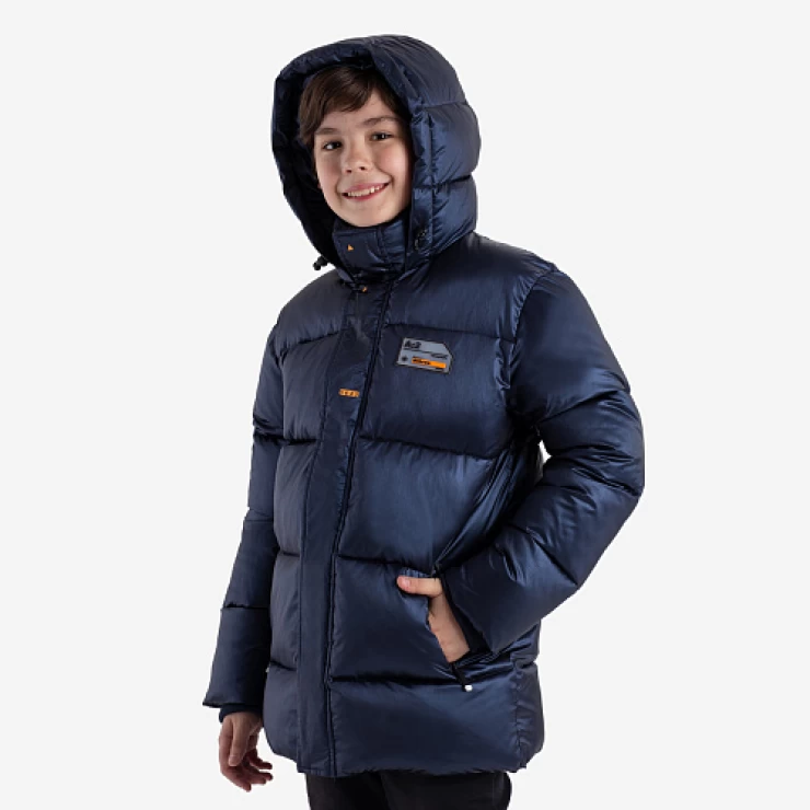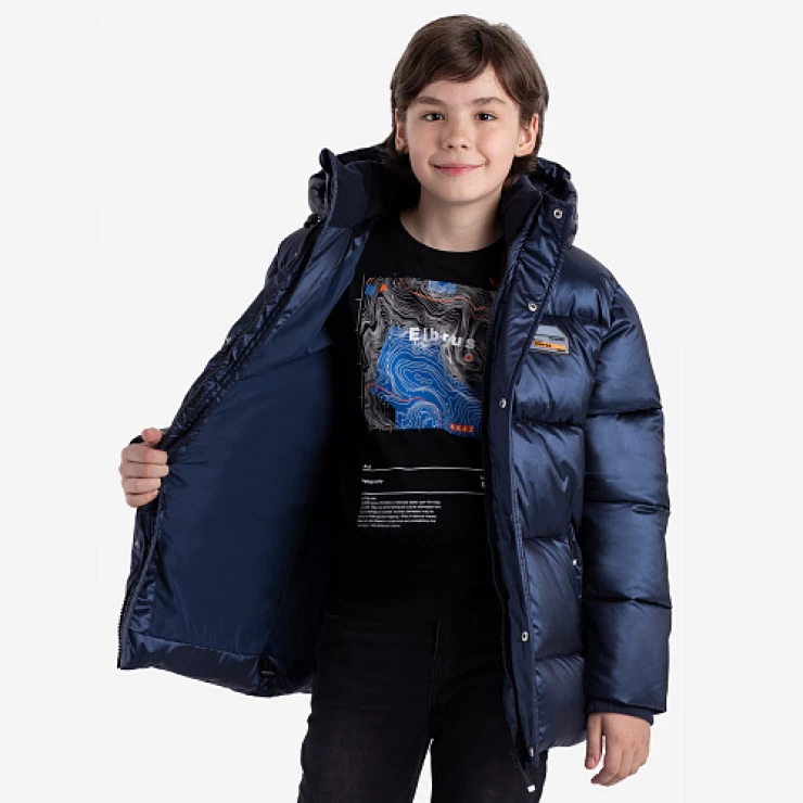 Удлиненный пуховик для мальчика-подростка изготовлен из черной матовой ткани с водоотталкивающим покрытием. Утеплитель - искусственный пух весом 300 г/м². Несъемный капюшон с регулируемой кулиской обеспечивает дополнительную защиту от ветра и холода. Высокий воротник с внутренней стороны утеплен мягким флисом для дополнительного комфорта. Модель дополнена функциональными карманами и молниями по бокам для удобства и практичности. Пуховик украшен оригинальными принтами для стильного образа.